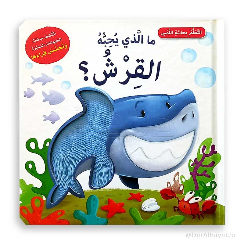 ما الذي تحبه القرش ؟ تعرف على الاشياء المفضلة التي يحبها القرش وتحسس جلده من خلال قصة هذا الكتاب الرائعة المحشوة بالرسوم الجذابة والصفات المميزة للغاية